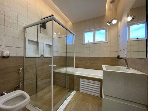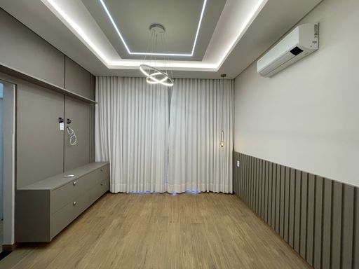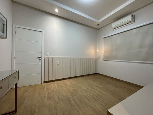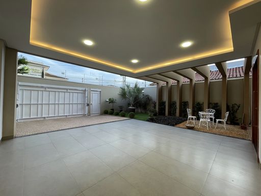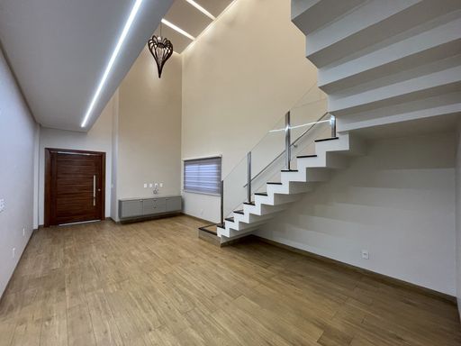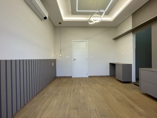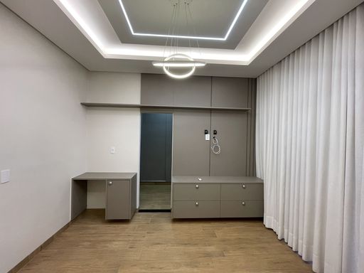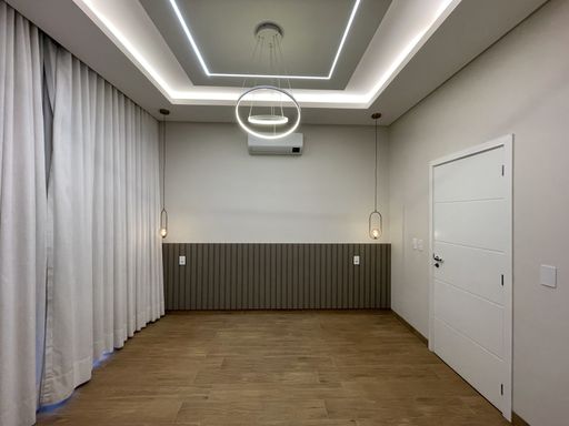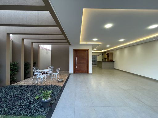 3 Quartos, sendo 1 com closet e suíte master com banheira e 1 com closet e suíte, escritório, sala dois ambientes, área gourmet com churrasqueira à carvão, banheiro social, lavanderia, cozinha com móveis planejados, jardim de inverno, jardim, pergolado, despensa.